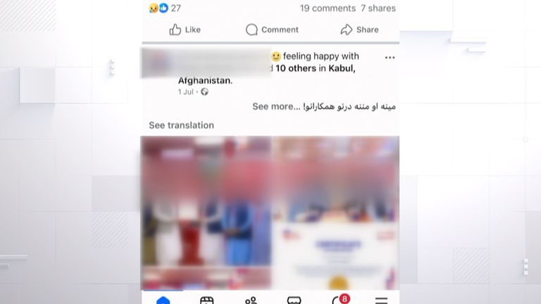 Sky News contacted one former interpreter by phone who is living in Britain after he shared images on his social media account of himself back in Afghanistan in the early summer.