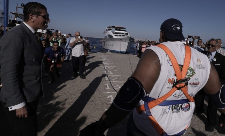 Ashraf Mahrous: Egyptský „Strongman“ zápasník táhne loď pomocí zubů | Světové zprávy