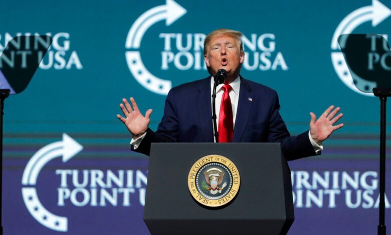 Pan Trump hovořil na událostech TPUSA spolu s dalšími významnými republikány, jako je jeho bývalý viceprezident Mike Pence, viceprezident JD Vance a guvernér Floridy Ron DeSantis.