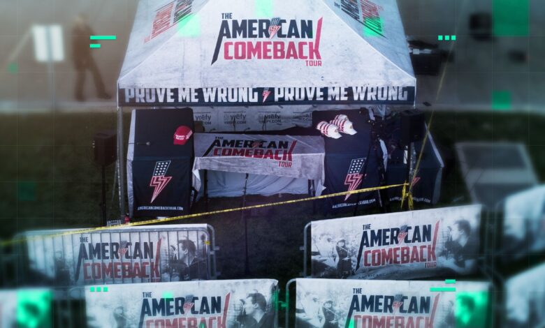 Analýza videí z události ukazuje, že nejméně čtyři muži, kteří se zdají být Kirkovým bezpečnostním týmem, obklopují jeviště.