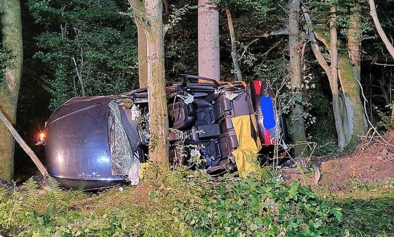 V sobotu zhruba v 12:30 se zdá, že auto se otočilo ze silnice a podle policejního oddělení Kassel narazilo do nedalekých stromů kolem 30 metrů od silnice.