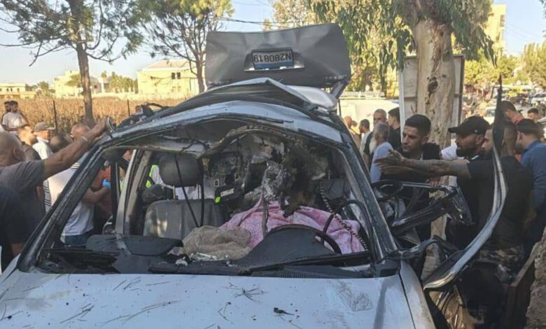 Obrázky ze scény v Bint Jbeil ukázaly zničené Mercedes.