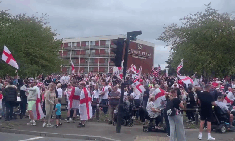 Mezitím Sky News hovořil s protestujícími, kteří sdílejí pocit hněvu o nákladech na uchazeče o azyl v hotelech a Cítíte, že vláda je ignorována. Důrazně odmítají být identifikováni jako „fašisté“ nebo „krajně pravicoví zločinci“.