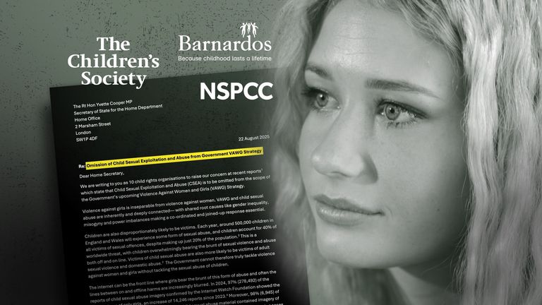 Organizace pro bezpečnost dětí přivítaly vládu „znovu přemýšlet“ o zahrnutí obětí zneužívání dětí do její strategie násilí proti ženám a dívkám po zprávě Sky.