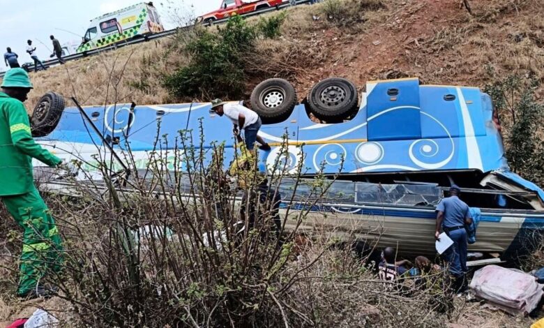 Autobus mířil do Zimbabwe a byl na silnici, známý jako N1, když v neděli otočil nábřeží kolem 18:00.