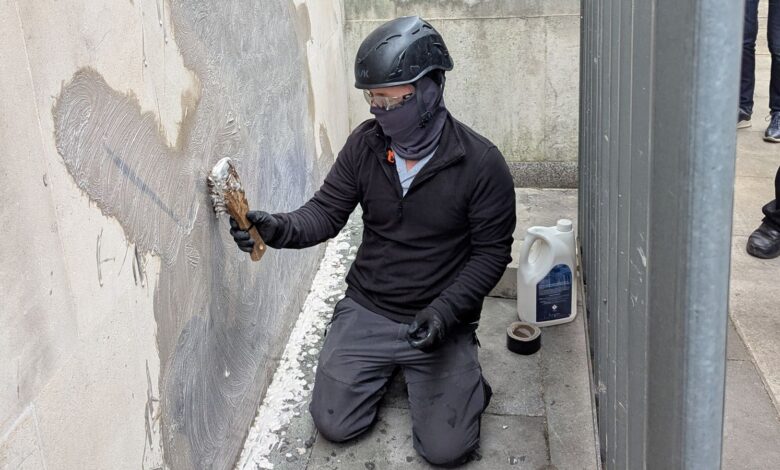 Nové umělecké dílo Banksy, které jsou odstraněny z královských soudů spravedlnosti Wall v Londýně | UK novinky