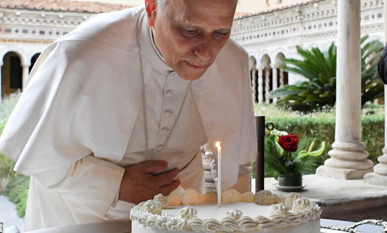Viděl obří bannery „Všechno nejlepší k narozeninám“, v angličtině, italštině a španělštině, balónech a blahopřání, které drželi věřící, shromážděné na náměstí svatého Petra v nedělním tradičním poledním požehnání.