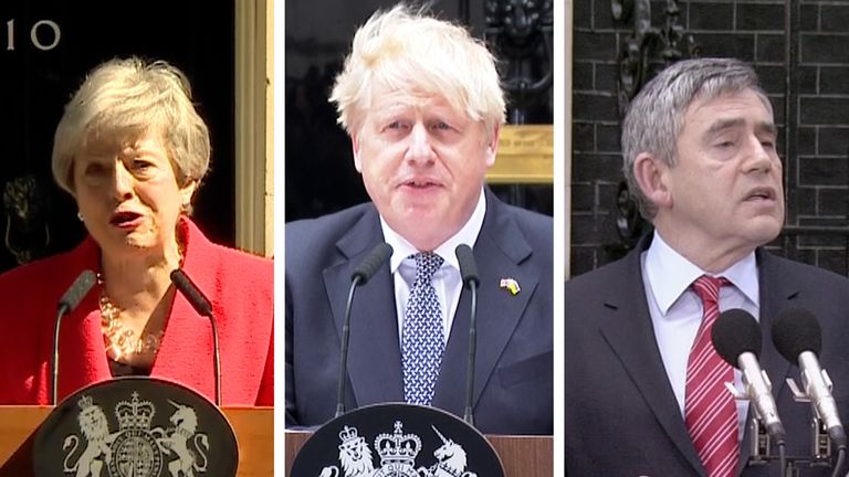 Tony Blair vyhrál bezprecedentní tři volby za práci, ale jeho postavení trpělo v důsledku irácké války. Po tlaku ze strany večírku, aby skončil, a spiknutí, které ho nahradilo Gordonem Brownem, oznámil datum předčasného odjezdu a rezignoval v polovině cesty v posledním období.