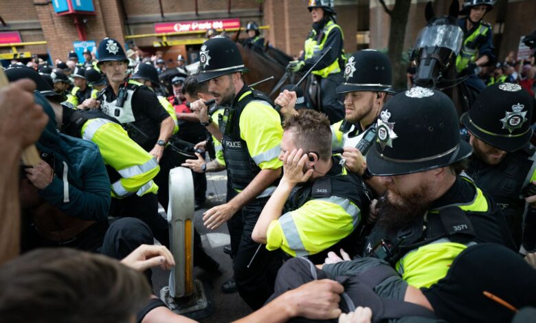 V srpnu se v srpnu účastní konávaci s policií, když se lidé účastní rasismu v Orpingtonu. Pic: Pa