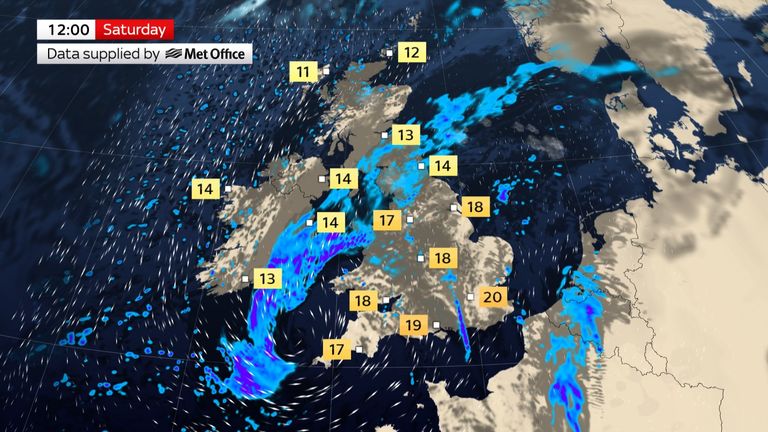 Prohlubující se oblast nízkého tlaku se tento víkend pohybuje po celé Velké Británii a přinese silný déšť, silné větry a možná i některé bouře.