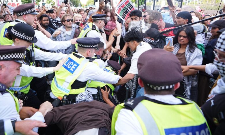 Policie odsuzuje „netolerovatelné zneužívání“ na protestu v Palestině – protože provedeno více než 425 zatčení | UK novinky