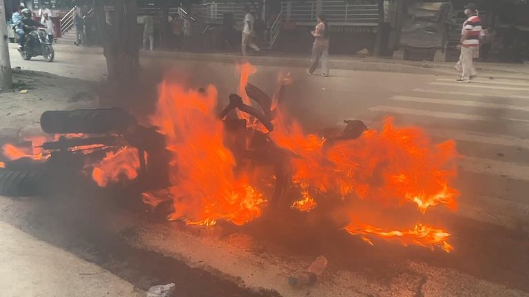 Parlamentní dům, domov zákonodárců, byl pohlcen plameny, když jsme se blížili. Demonstranti se radovali venku – tisíce povzbuzovaly, když budova spálila.