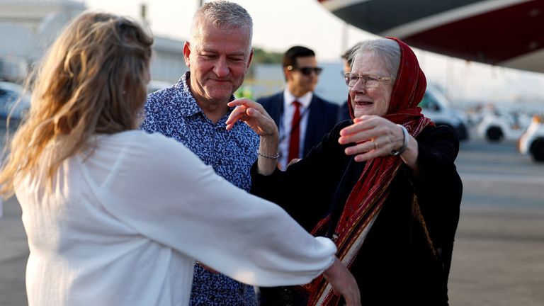 Sky korespondent Cordelia Lynch byl na letišti v Kábulu, když dorazil osvobozený pár a odešel.