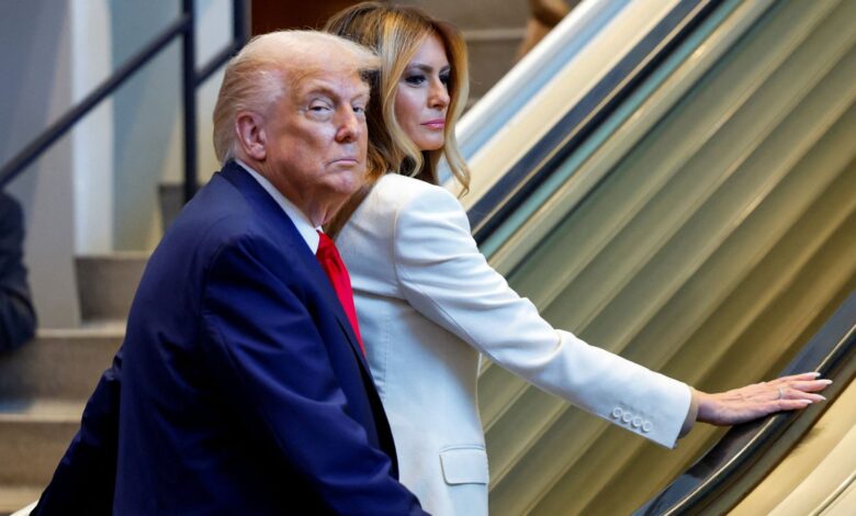 V příspěvku na své pravdivé sociální platformě řekl, že eskalátor nesoucí ho a jeho manželku „se zastavil“ na cestě do hlavního patra a téměř je přiměl, aby padli “na ostré okraje těchto ocelových schodů, nejprve obličej“.