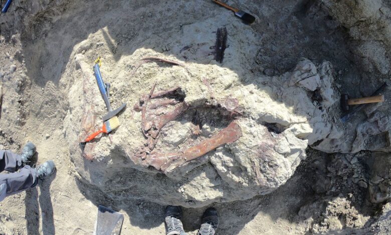 Vědci uvedli, že odkryli část lebky, jakož i paže, noha a kosti ocasu z útvaru skalního útvaru Lago Colhue Huapi v Patagonii.