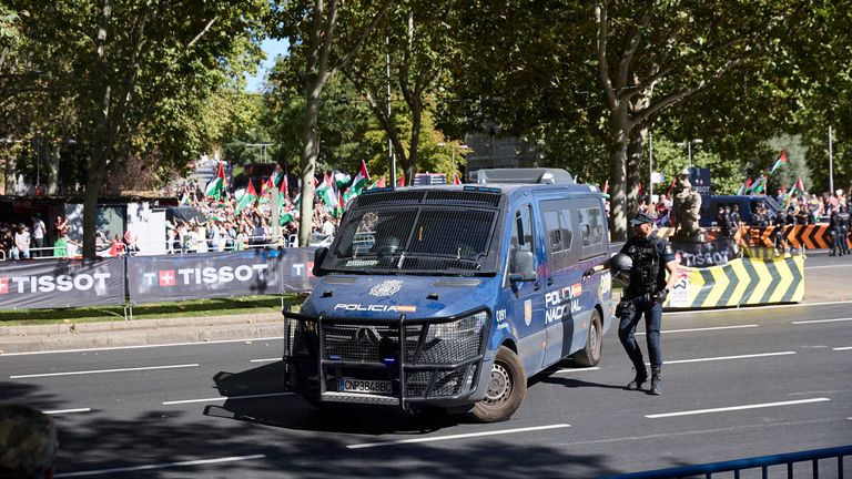 Více než 1 500 policistů bylo nasazeno pro závěrečnou fázi španělské verze Tour de France, protože na finále v Madridu probíhají více pro-palestinských protestů.