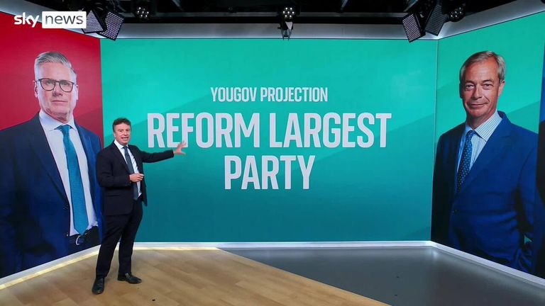 Projekce hlasování YouGov MRP, založená na 13 000 vzorcích převzatých za poslední tři týdny, navrhl, že volby, které se konají zítra, zaznamenají zavěšený parlament s reformou UK, který získal 311 ze 650 křesel – 15 křesel krátko od formálního výherní linie 326.