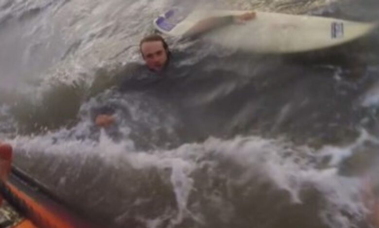 Video ukazuje, že Surfer je zachráněn RNLI poté, co ho mocný proud roztrhne, vytáhl ho na moře | UK novinky
