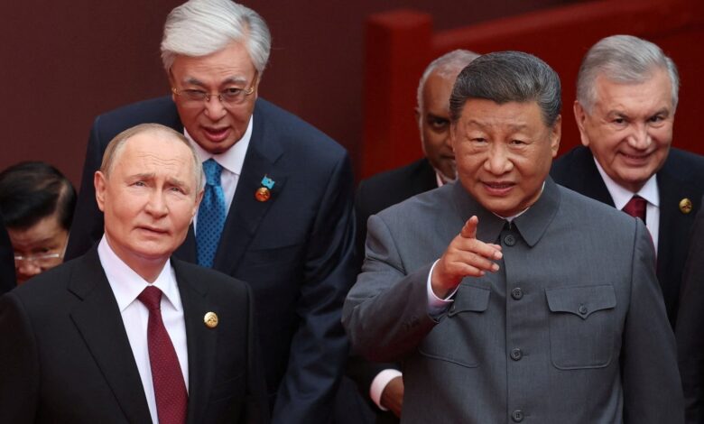 Žádná nehoda, že Xi Jinping byl neustále představen s ruským Vladimirem Putinem po jeho pravé straně a Severní Koreou Kim Jong Un po jeho levici.