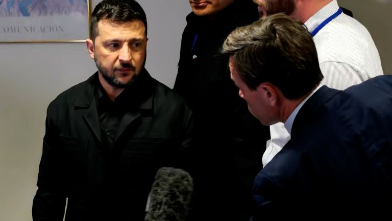 Okamžik Volodymyr Zelskyyy v Komoře Valného shromáždění OSN přišel den poté, co řekl Sky News, že jazyk Donalda Trumpa představoval „velký posun“ v americkém postoji na Ukrajině.