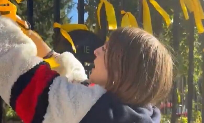 Žena natáčela řezání pamětních žlutých stuh pro izraelské rukojmí | UK novinky
